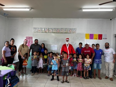 Em clima de festa, o Papai Noel marcou presença, encantando as crianças e tornando o momento ainda mais especial. A ação simboliza o compromisso do Município com o cuidado, a proteção e o bem-estar das nossas crianças, fortalecendo valores como solidariedade, afeto e inclusão social.