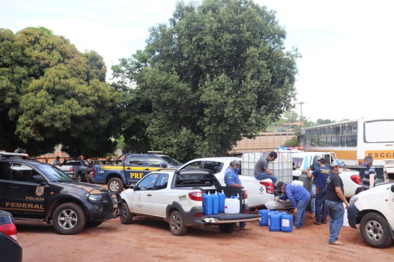 Na Tarde desta Terça-feira 25/03 na Sec. De Obras de Mirassol d’Oeste foi realizada Entrega do Álcool 70% Doado pela Destiladoria Novo Milenium para os 14 Municípios do Vale do Jauru ao combate da epidemia do (COVID-19), com a Presença da Polícia Federal, PRF e Polícia Militar Fiscalizando a Entrega.