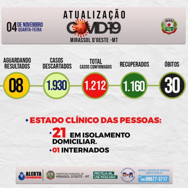 Números da covid-19 em Mirassol d’Oeste
