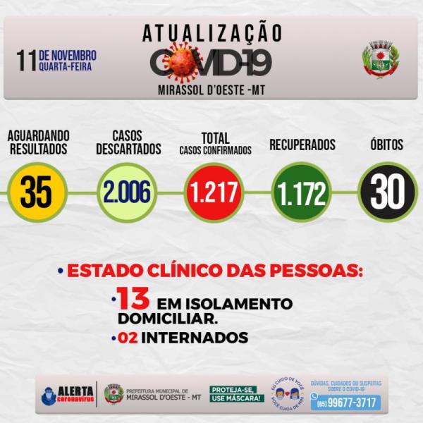 O monitoramento mostra ainda que a cidade tem 35 casos suspeito e 2.006 descartados.