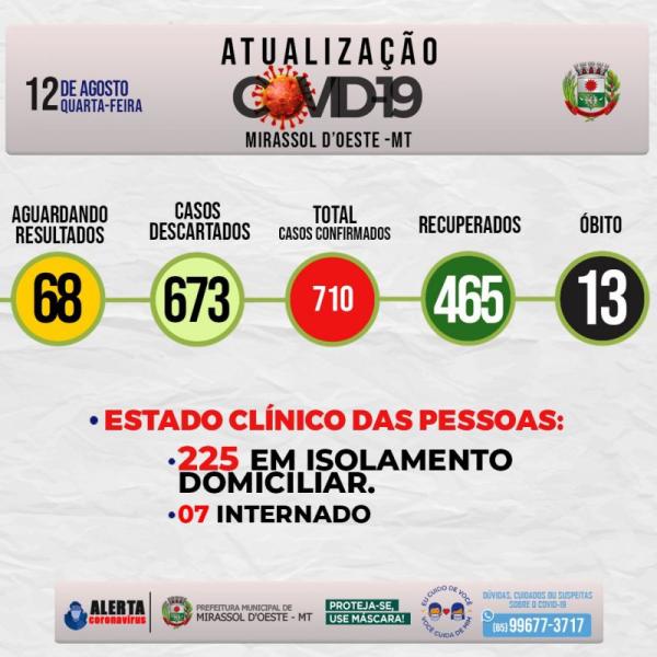 O monitoramento mostra ainda que a cidade tem 68 casos suspeito e 673 descartados.