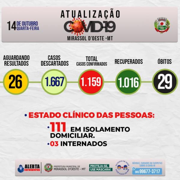 Números da covid-19 em Mirassol d’Oeste