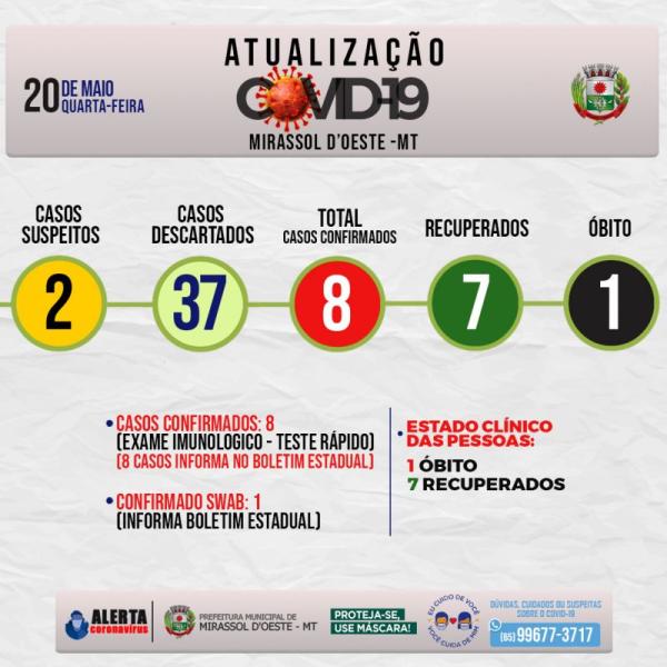 Números da covid-19 em Mirassol d’Oeste