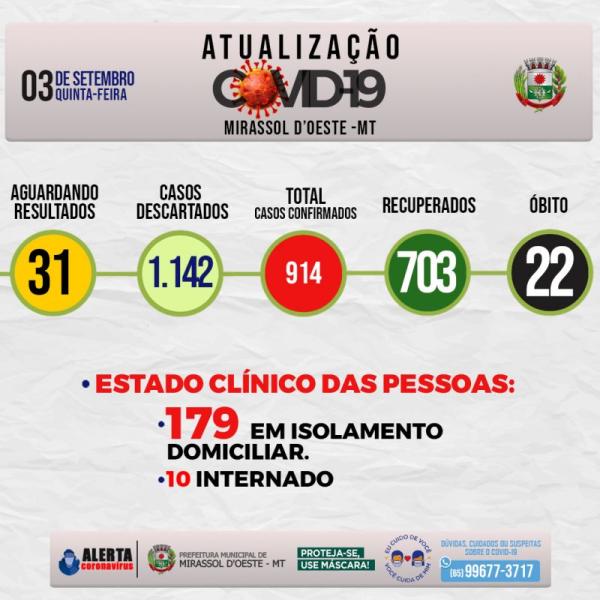 Números da covid-19 em Mirassol d’Oeste