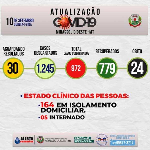 Números da covid-19 em Mirassol d’Oeste