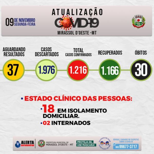 Números da covid-19 em Mirassol d’Oeste