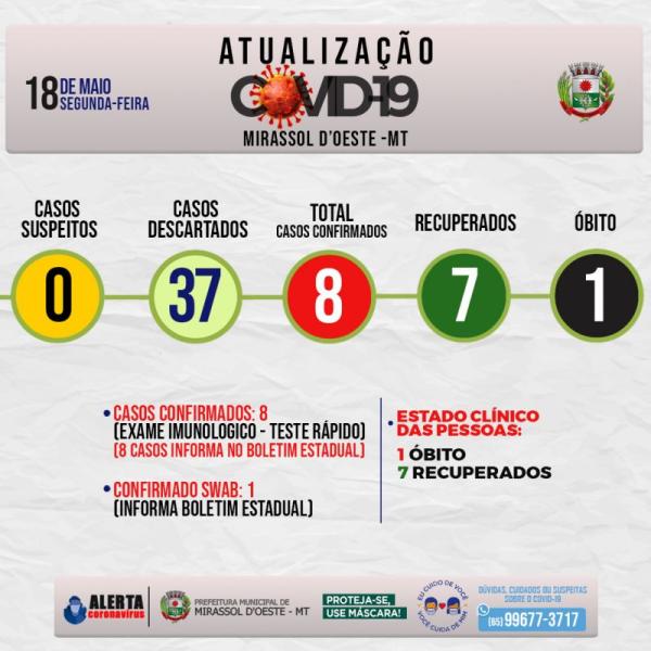 O monitoramento mostra ainda que a cidade tem nenhum caso suspeito e 37 descartados desde a confirmação das primeiras ocorrências.