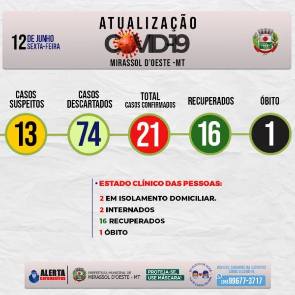 Números da covid-19 em Mirassol d’Oeste