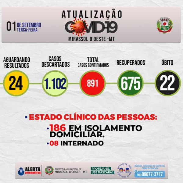 Números da covid-19 em Mirassol d’Oeste