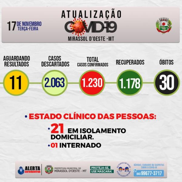 Números da covid-19 em Mirassol d’Oeste
