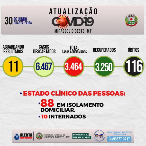 Números da covid-19 em Mirassol d’Oeste