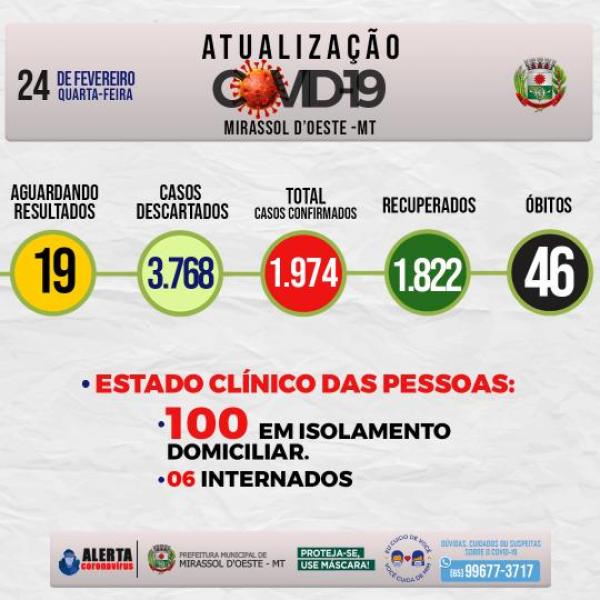 Números da covid-19 em Mirassol d’Oeste
