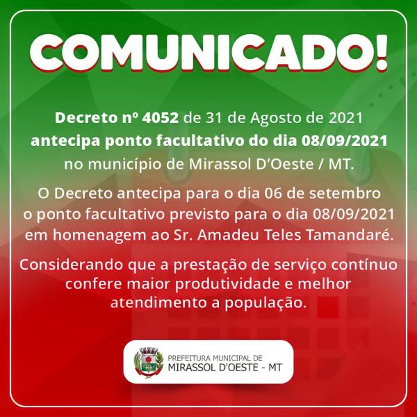 Rua Antonio Tavares, n° 3310, Centro CEP: 78.280-000 - Mirassol D’Oeste, MT