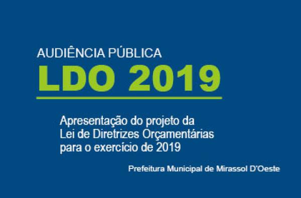 O prefeito de Mirassol D'Oeste, Euclides Paixão convida a população miradolense para participarem, no dia 26 de março de 2018, da Audiência Pública para apresentação e discussão da LDO - Lei de Diretrizes Orçamentárias para o exercício 2019.