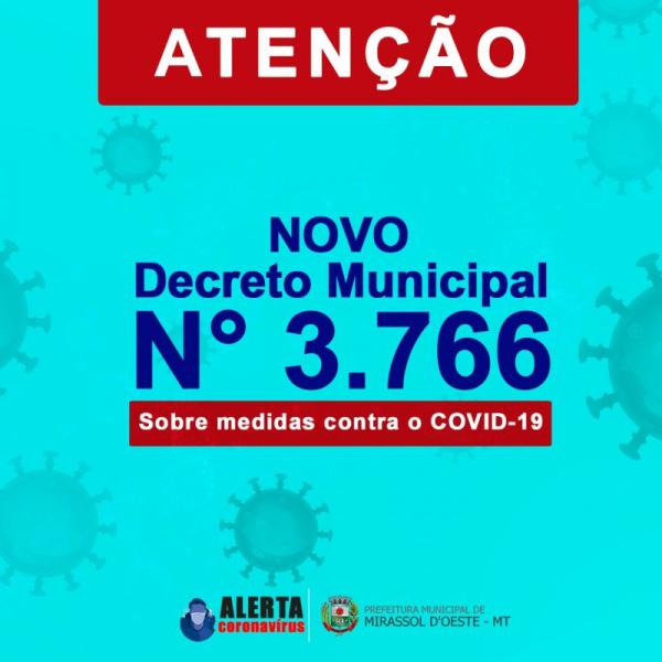 CONSIDERANDO os Decretos municipais de nº 3690, 3693, 3694, 3695, 3703, 3708, 3.712, 3724 e 3751/2020 sobre a adoção, no âmbito da Administração Pública direta e indireta do Município de Mirassol d´Oeste, de medidas temporárias e emergenciais, que instituiu o Comitê de enfrentamento ao novo Coronavírus;
