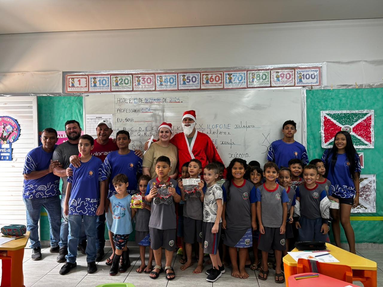 Em clima de festa, o Papai Noel marcou presença, encantando as crianças e tornando o momento ainda mais especial. A ação simboliza o compromisso do Município com o cuidado, a proteção e o bem-estar das nossas crianças, fortalecendo valores como solidariedade, afeto e inclusão social.