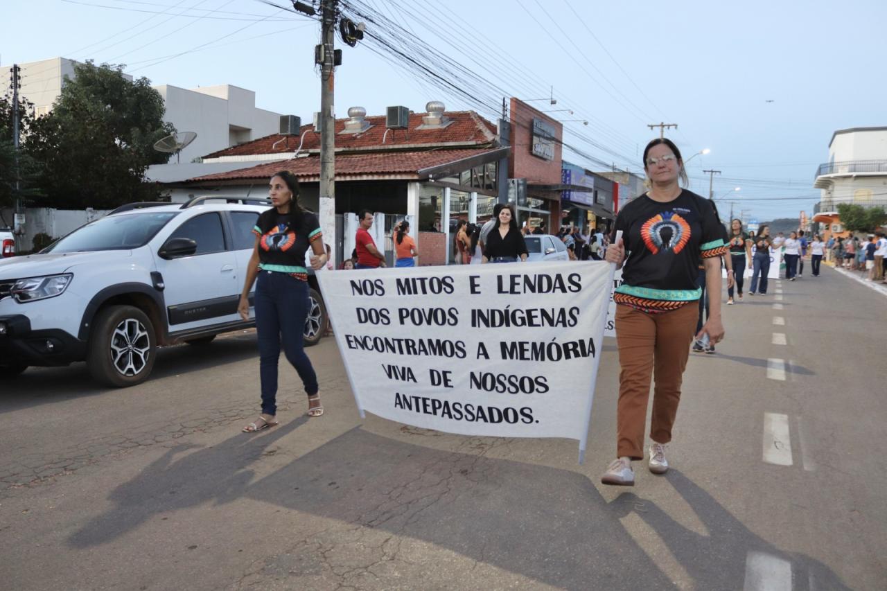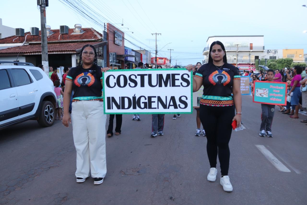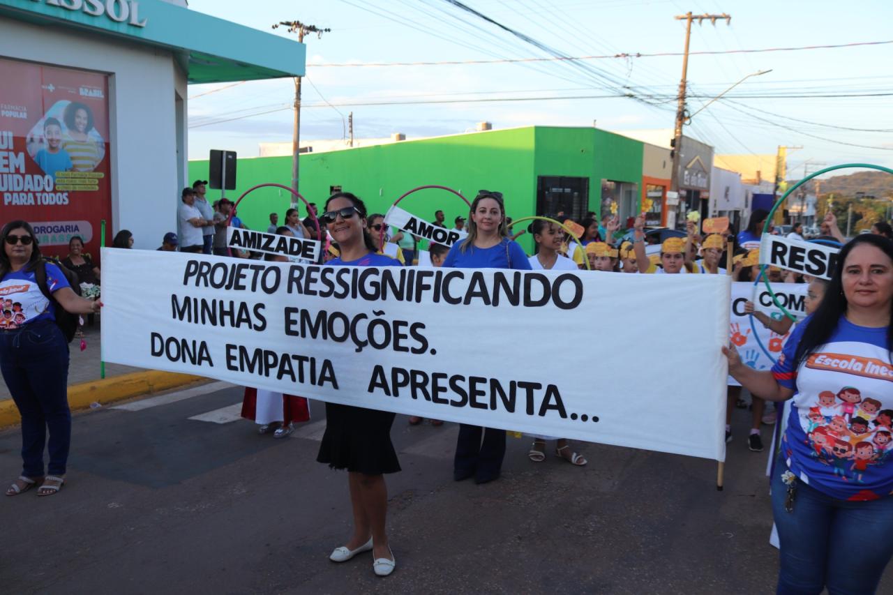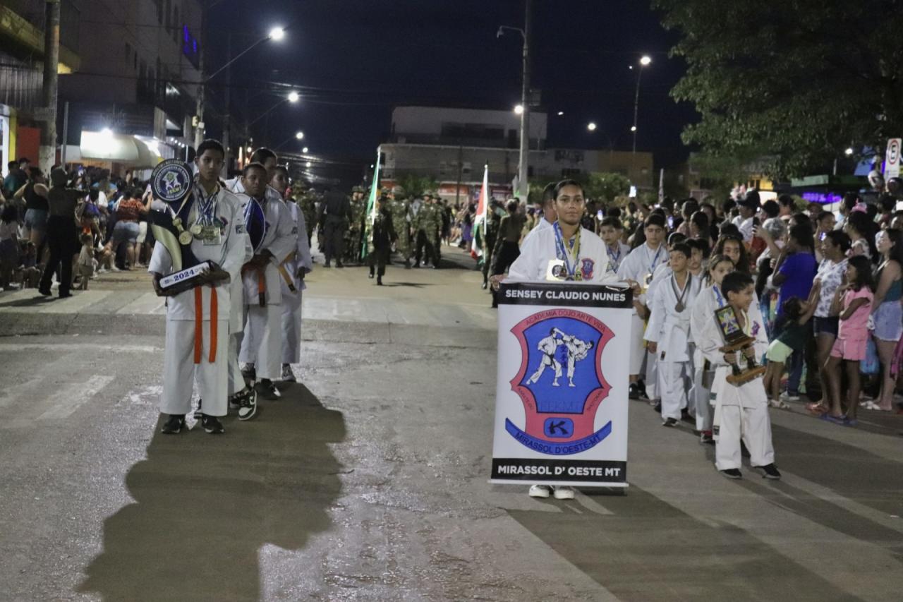 A abertura foi conduzida pela Ordem DeMolay e a Banda do C FRON Jauru/66º BIMTZ. Entre os destaques do desfile estiveram projetos escolares como “Mais Infância”, “O Encanto do Peter Pan”, “A Magia da Leitura”, ações da APAE, temas ambientais, inclusão social, valorização da cultura indígena, protagonismo estudantil e campanhas de conscientização.