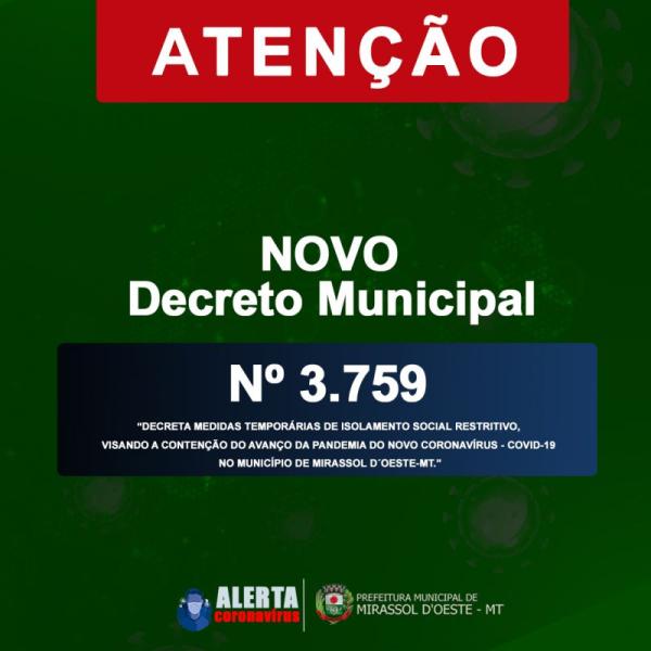 “DECRETA MEDIDAS TEMPORÁRIAS DE ISOLAMENTO SOCIAL RESTRITIVO, VISANDO A CONTENÇÃO DO AVANÇO DA PANDEMIA DO NOVO CORONAVÍRUS - COVID-19 NO MUNICÍPIO DE MIRASSOL D´OESTE-MT.”