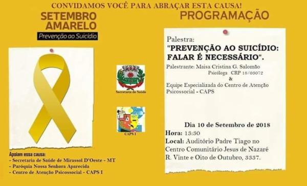 Neste ano, as atividades de prevenção e sensibilização em Mirassol D’Oeste, incluem uma palestra com a psicóloga Maisa Cristina G. Salomão.