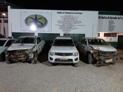 Os veículos foram encontrados, sete pessoas presas e um ainda está foragido. Entretanto, na tentativa de fugir da polícia, os assaltantes se envolveram em acidentes, ocasionando o capotamento de uma camioneta e danos na parte frontal de outra.
