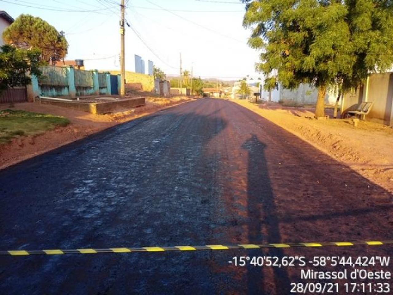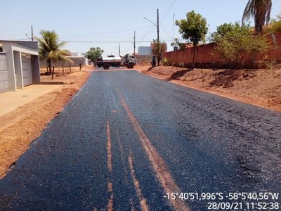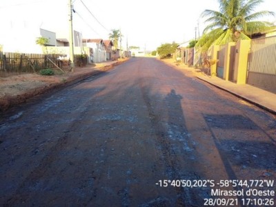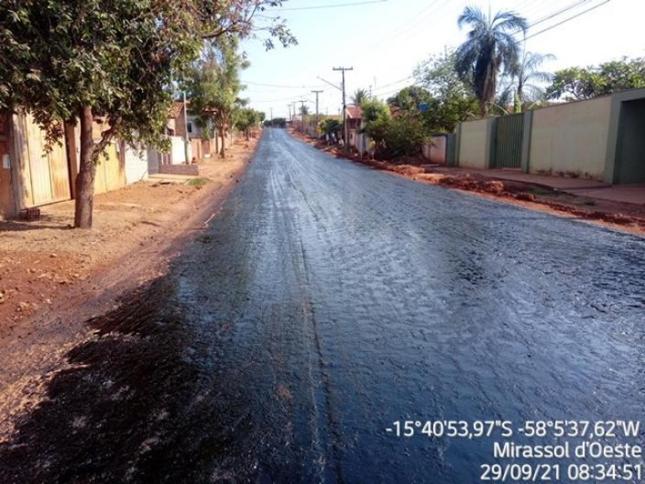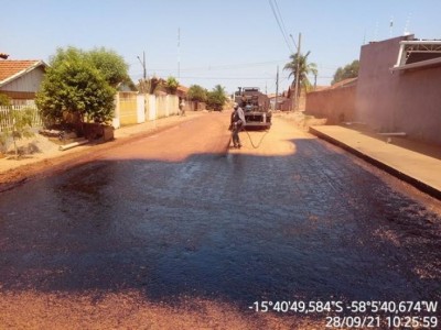Aplicação da emunçao asfáltica CM-30 ruas Arco Íris e Joaquim Bento.