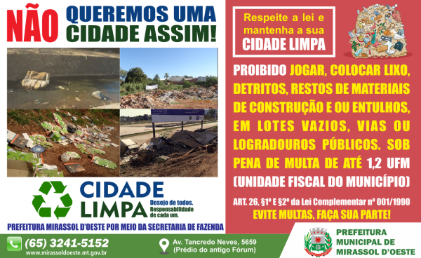 Em parceria com o Município, a Cooperativa de Trabalho Vale do Teles Pires (Cooper Vale) esta sendo realizado campanha educativa na cidade, com a distribuição de 10 (dez mil) panfletos sobre como proceder com seu lixo, “principalmente na armazenagem e onde depositá-lo”, informou o Secretário.