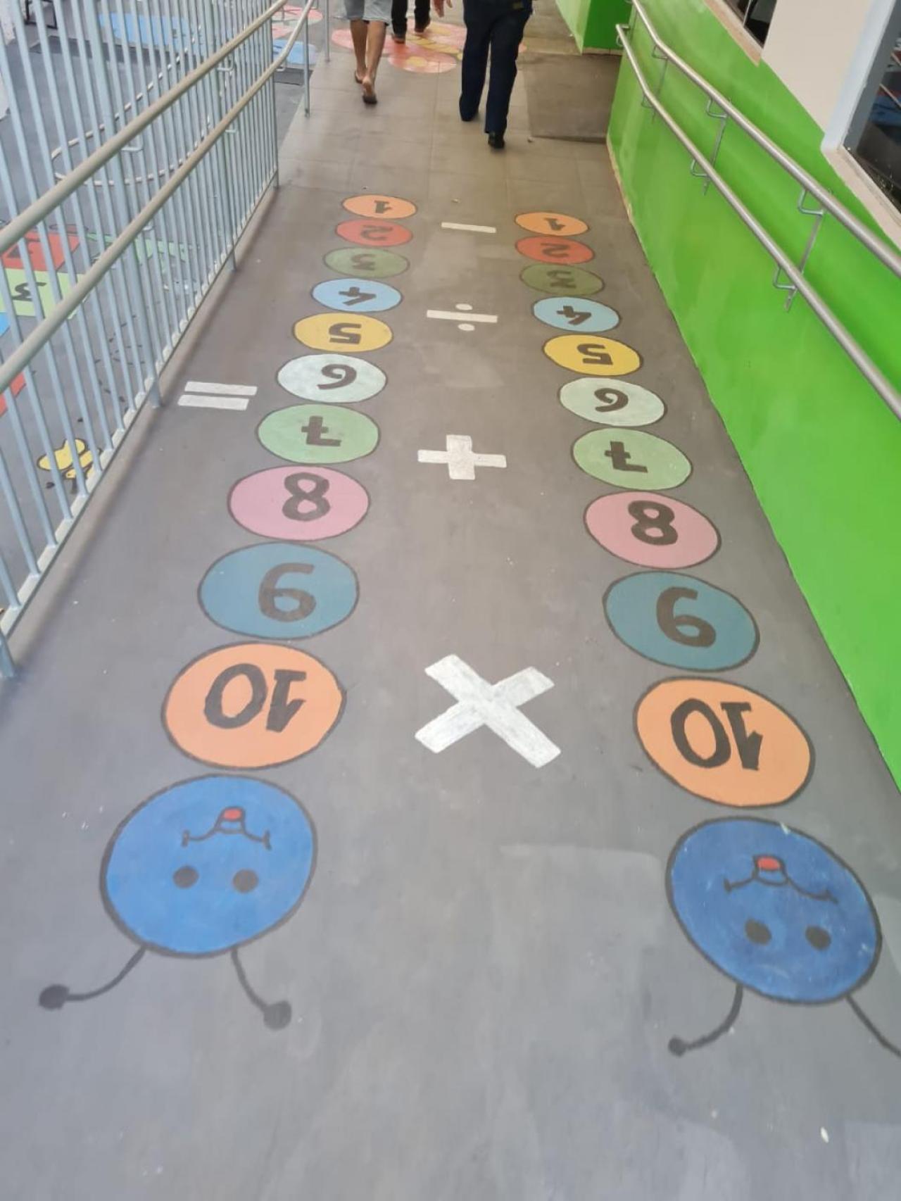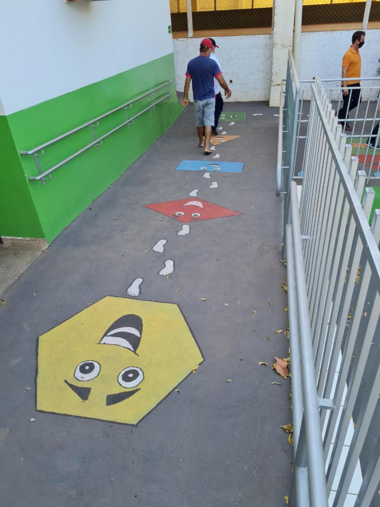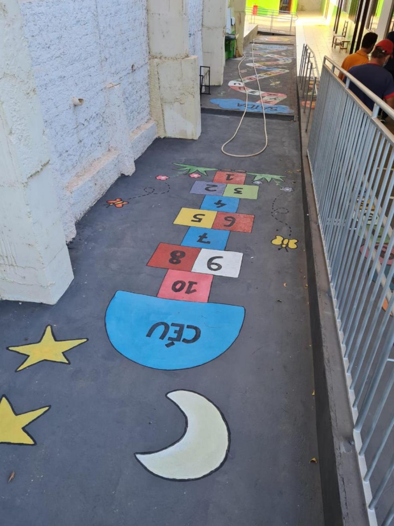 É nesse ambiente de aprendizagem que as crianças vão socializar-se e ganhar autonomia. E foi pensando em tudo isso que as pinturas pedagógicas foram realizadas no chão da escola, unindo diversão ao conhecimento.