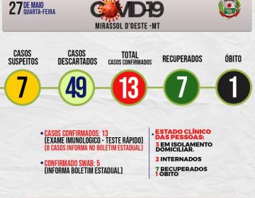Boletim Municipal Diário da Prefeitura Registra mais 1 caso por COVID-19 Totalizando 7 casos em Mirassol d’Oeste