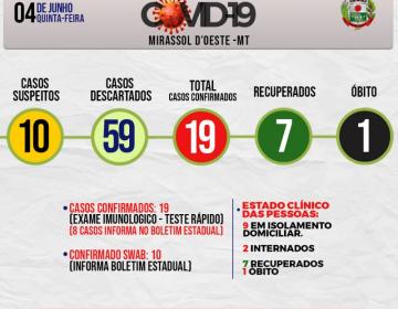 Boletim Municipal Diário da Prefeitura Registra mais 4 casos por COVID-19 Totalizando 11 casos em Mirassol d’Oeste
