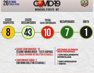 ATENÇÃO! Boletim Municipal Diário da Prefeitura Registra mais um caso por covid-19 Totalizando 2 casos em Mirassol d’Oeste