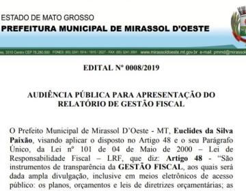 AUDIÊNCIA PÚBLICA PARA APRESENTAÇÃO DO RELATÓRIO DE GESTÃO FISCAL