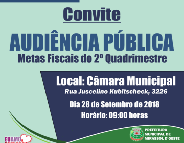 Relatório de gestão fiscal será apresentado em audiência pública na Câmara Municipal