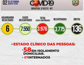 Boletim Epidemiológico Diário nº 169 VE/SMS – CORONAVÍRUS (Quinta-feira 02/09/2021)