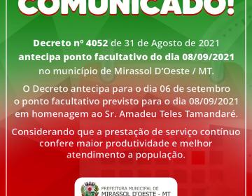 Rua Antonio Tavares, n° 3310, Centro CEP: 78.280-000 - Mirassol D’Oeste, MT