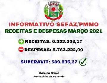 Arrecadação municipal no mês de março de 2021