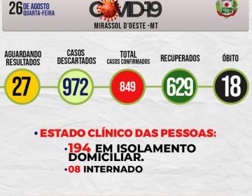 Boletim Diário CoronaVírus - (Quarta-Feira 26/08/2020)