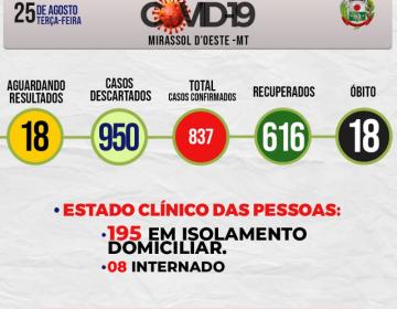 Boletim Diário CoronaVírus - (Terça-Feira 25/08/2020)