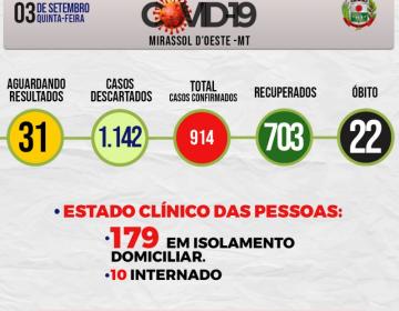Boletim Diário CoronaVírus - (Quinta-Feira 03/09/2020)