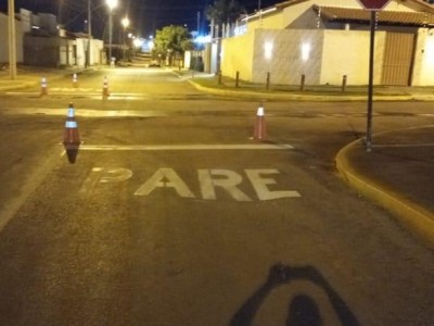 Sinalização horizontal de trânsito bairro Pôr do sol.