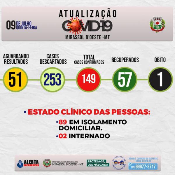 Números da covid-19 em Mirassol d’Oeste