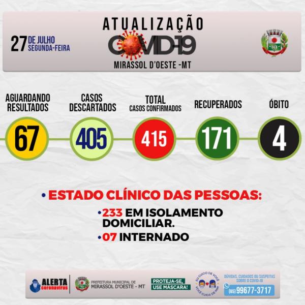 Números da covid-19 em Mirassol d’Oeste