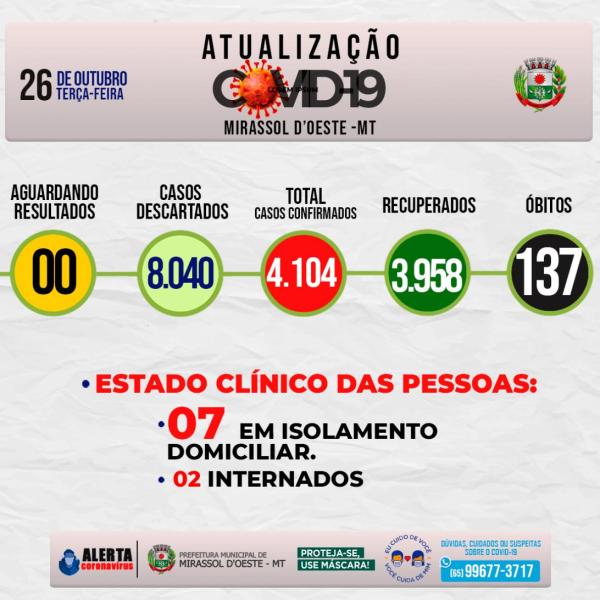 Números da covid-19 em Mirassol d’Oeste
