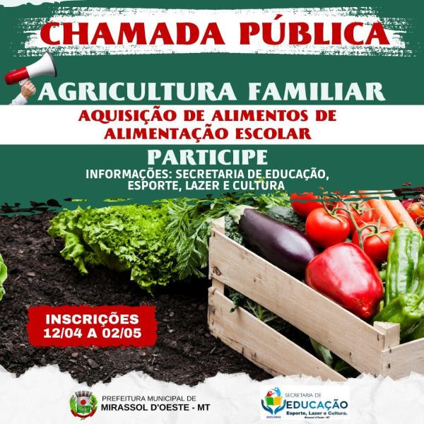 Chamada Pública nº01/2023, para aquisição de gêneros alimentícios diretamente da Agricultura Familiar e do Empreendedor Familiar Rural, para alimentação escolar com dispensa de licitação conforme §1º da Lei n.º 11.947, e Resoluções do FNDE relativas ao PNAE, por exemplo a Resolução CD/FNDE nº06, de 08 de Maio de 2020.