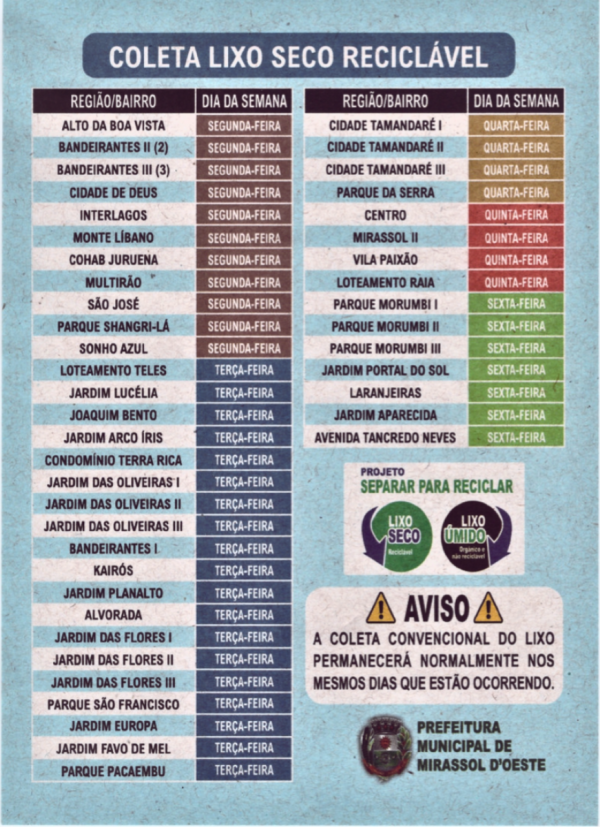 Atenção moradores dos bairros: