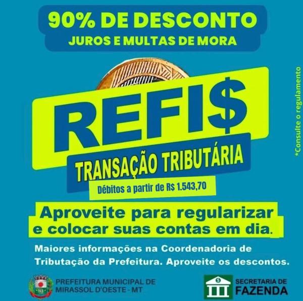 A Prefeitura de Mirassol D’Oeste, por meio da Secretaria Municipal de Fazenda, está concedendo até 90% de desconto em juros e multas de mora para pagamento à vista!