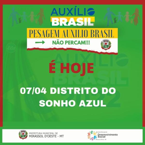 NESTA SEXTA-FEIRA A PESAGEM AUXILIO BRASIL NO DISTRITO DO SONHO AZUL.
