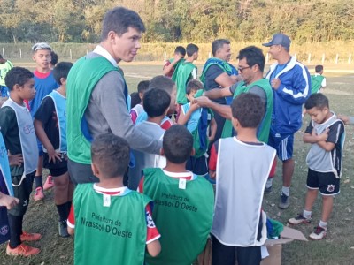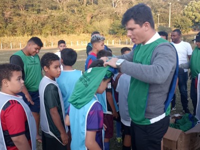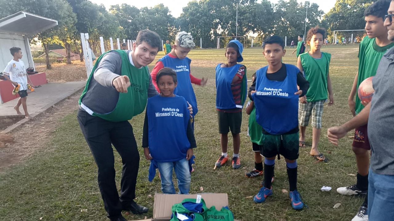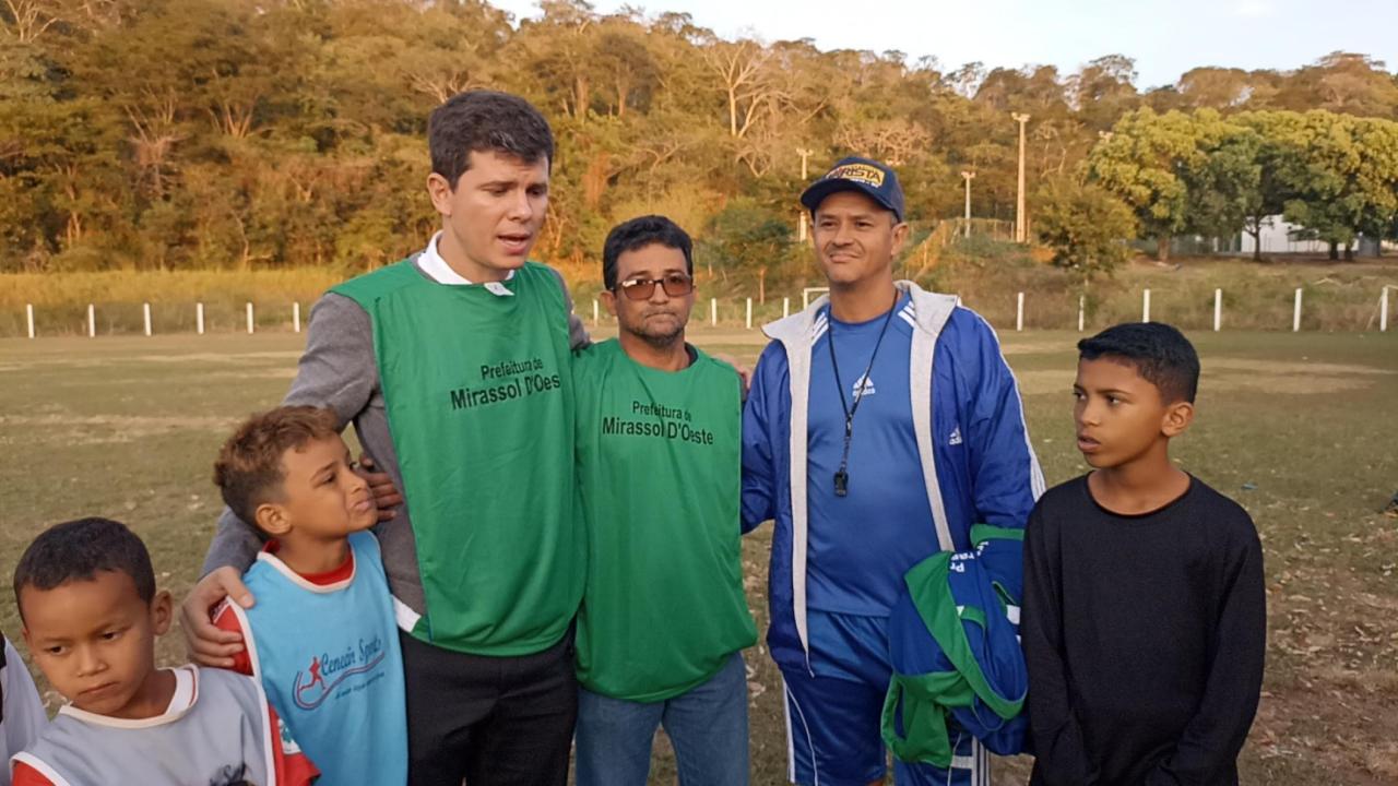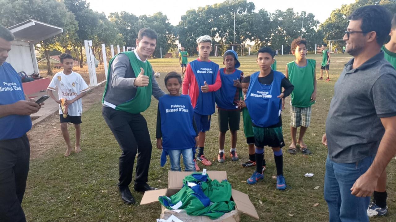 A Prefeitura Municipal de Mirassol d'Oeste, através da Secretaria Municipal de Esporte, Lazer e Cultura, realizou a entrega de Coletes Dupla face para os alunos da Escolinha do Professor Ney. O evento de entrega aconteceu no fim da tarde desta quarta-feira (18), no Campo Municipal Pedro Custódio Negrão, e teve as presenças do prefeito, Héctor Alvares, do Gerente de Esporte, Lazer e Cultura, Jorge Ilton (Bolinho), do chefe do Detran, Bill do Som, do Professor Ney, além de amigos e colaboradores.