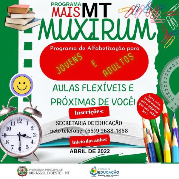 Programa de Alfabetização para jovens e adultos. Inscrições: