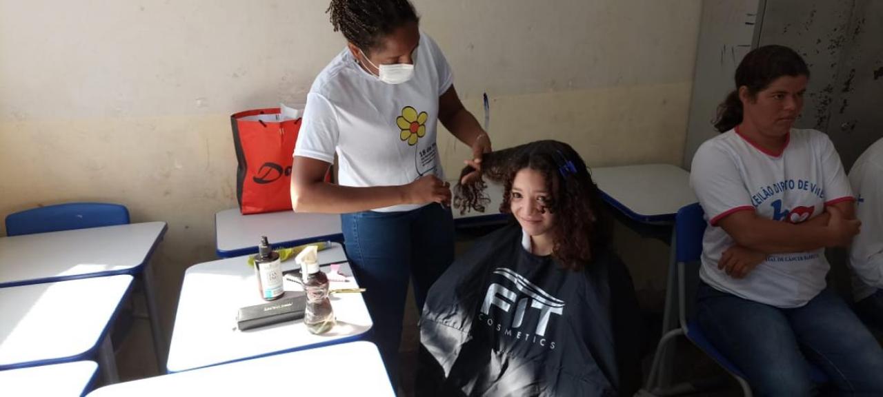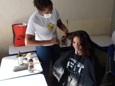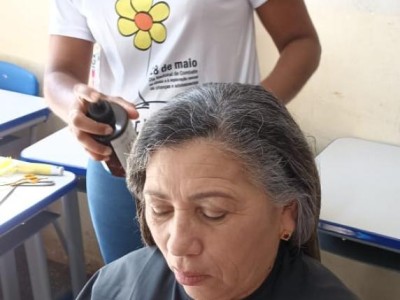 As mulheres também puderam realçar a sua beleza por meio do trabalho voluntario da profissional Elisangela, que ofertou o serviço de corte de cabelo para as presentes que se interessassem no serviço.