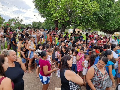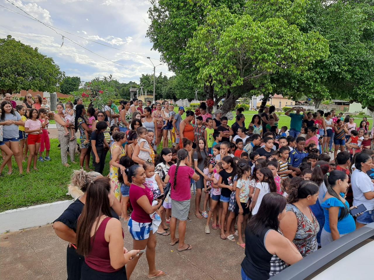 Logo em seguida foi a vez das crianças que vieram de todos os bairros da cidade e aguardavam a vez na praça do Jardim São Paulo.